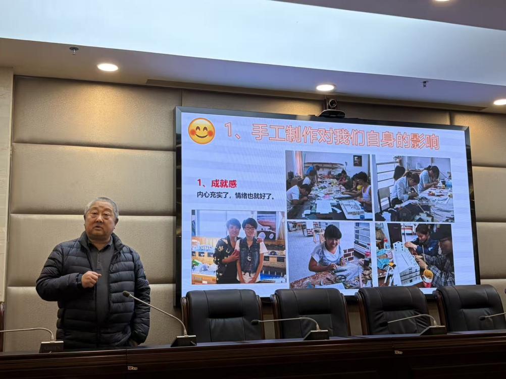 上午9时,“古桥营造技艺传习所”活动室座无虚席。面对翘首以待的助教协会全体学生与指导教师,陈老师并未急于开始授课,而是率先走到学生们此前完成的作品前,俯身进行端详。陈老师一边点评,一边随手拿起桌上的木料,向学生们进行现场演示。在职业大赛备赛策略分享环节,陈老师结合自己带领学生荣获全国大奖的经历,通过一个个生动的案例阐述备赛心得。“比赛比拼的不仅是技术,更是心态与细节。”他鼓励在场的学生,“你们手中的每一块木料,都是与古人对话的媒介,用心去做,作品自然会展现出其价值。”