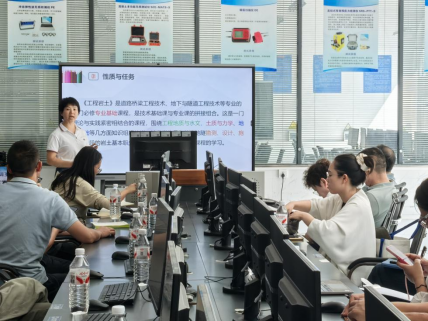 公开课教研活动紧扣学校专业特色,围绕 “课堂提质” 目标与 “教师成长” 需求展开。首先是3分钟教师说课展示环节,然后是20 分钟真实课堂授课。路桥工程学院公开课授课教师分别为杜亮及姜英两位教师。杜亮老师讲授课程为《工程测量》,授课内容聚焦 “用全站仪测结构物平面图”,以 “理论讲解 + 分组仪器操作实践” 模式,融合理论与实操;姜英老师讲授课程为《工程岩土》,授课内容聚焦“岩石矿物的辨识”,通过让学生观察、触摸矿物标本,引导学生认识岩石矿物、分析成分及工程用途。两位教师授课风趣幽默,课堂教学都在室外开展,采用问题导向、探究式等教学方法和手段开展教学活动,充分调动了学生的学习兴趣及学习积极性。